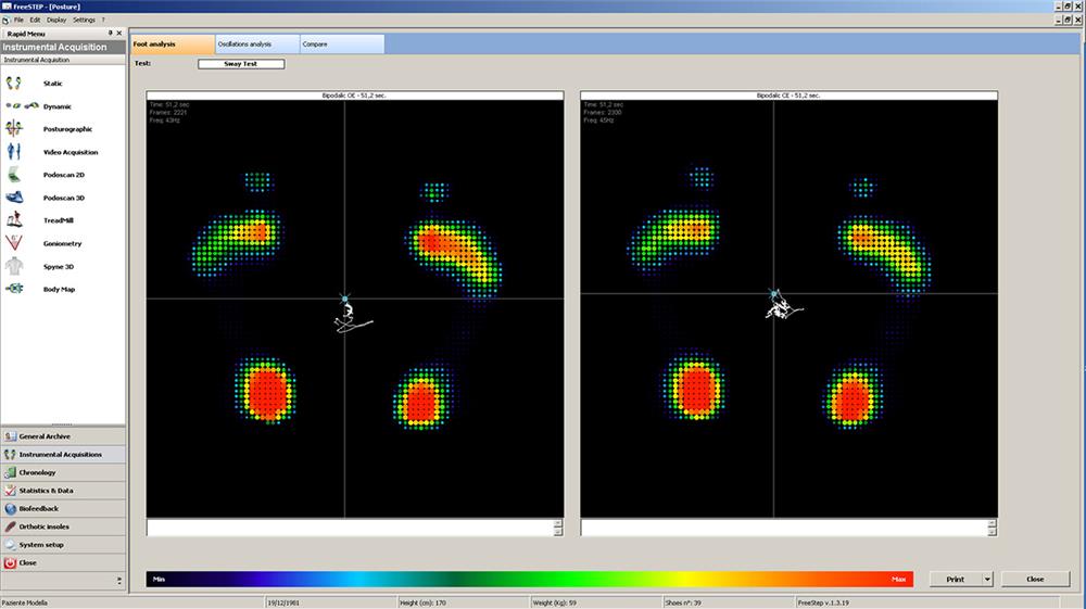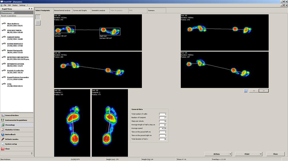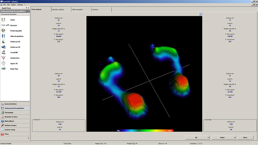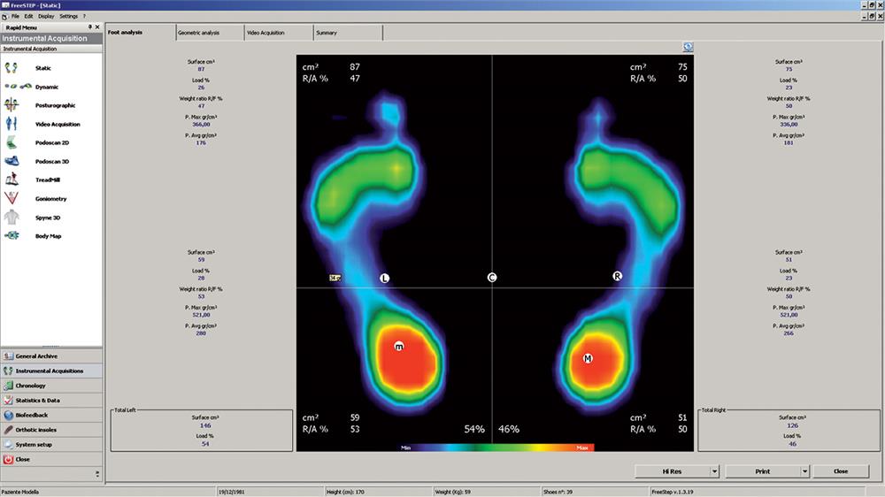 Rychlé měření a záznam statické a dynamické baropodometrie.