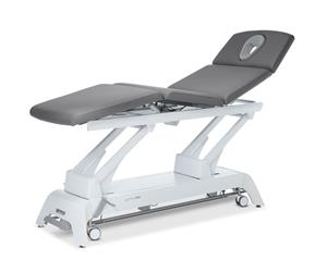 4-dílné lehátko se třemi motory pro optimální podporu a snadné použití, ideální pro ošetření vsedě a lymfatické drenáže. Nastavení dílů stejné jako u předchozích modelů.