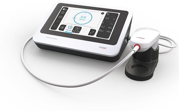 Ultrazvukové hlavice Gymna jsou vybaveny systémemDynamUS, unikátní funkcí v oblasti terapeutického ultrazvuku. DynamUS je ovládání detekce rychlosti pohybu od Gymny, které vás vede při vaší léčbě. Pomáhá vám udržet správné dynamické tempo pohybu. Tato uživatelsky přívětivá bezpečnostní funkce pro pacienta sleduje pohyb ultrazvukové hlavice na kůži pacienta a varuje, pokud je její tempo příliš pomalé nebo příliš rychlé. Zpětná vazba je viditelná prostřednictvím oranžové LED na ultrazvukové hlavici: