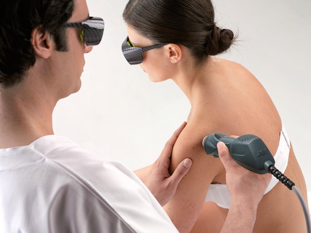 ostatní vysokovýkonné lasery špičkovým výkonem 25W, synchronizovanou kombinací 2 vlnových délek a především úspěšností a efektivitou léčby.