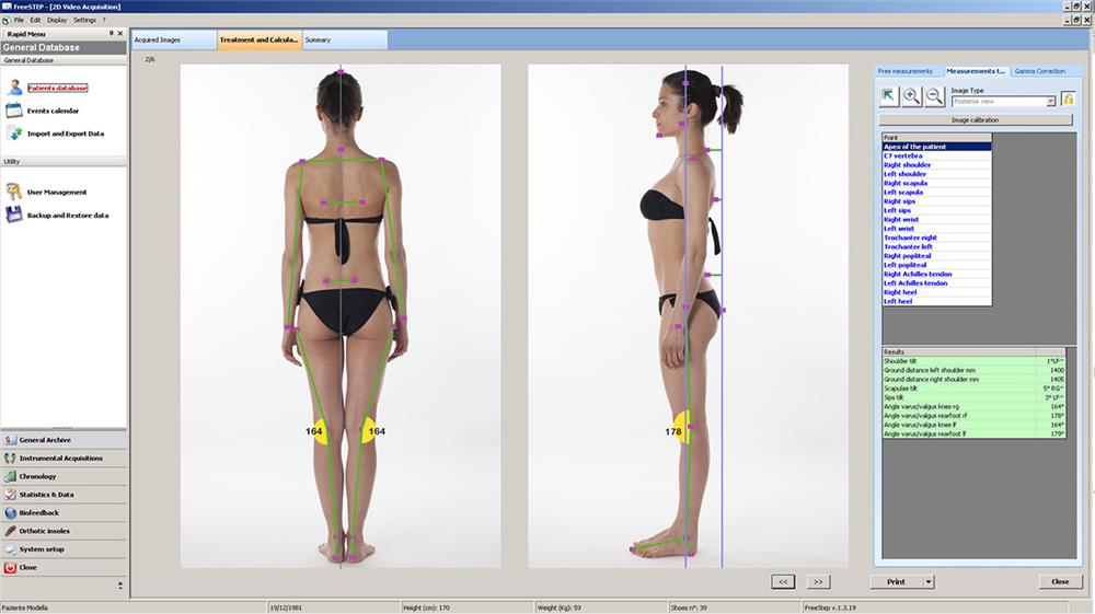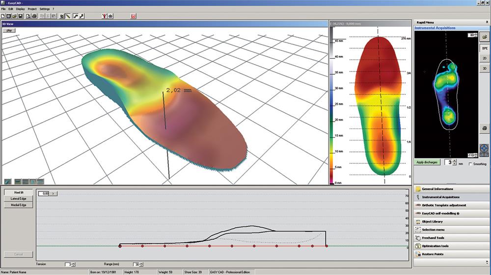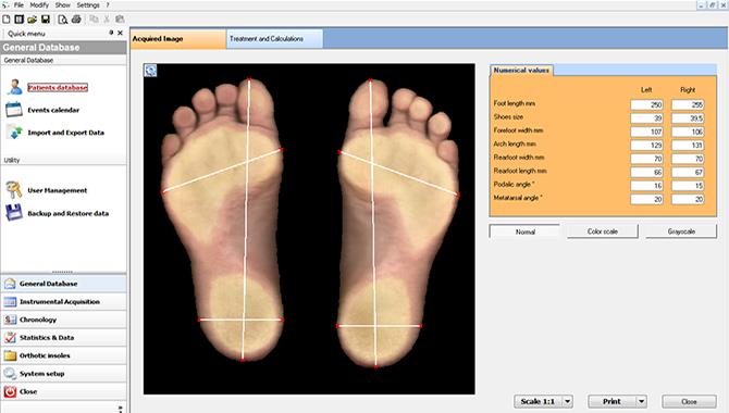 Zároveň je možné ruční měření úhlů a os, výsledný snímek je možné využít jako podklad pro výrobu ortopedických vložek na míru pacientovy, a to prostřednictvím softwaru EasyCAD.