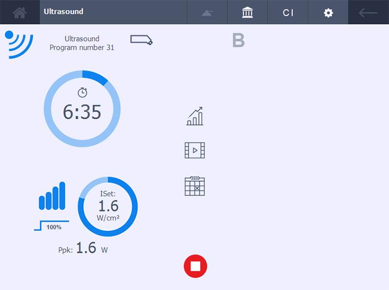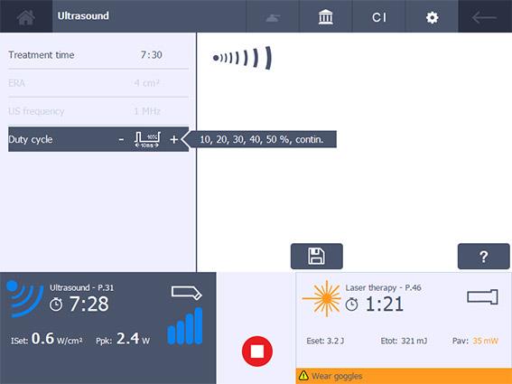• Hybridní multifrekvenční UZV- hlavice 4cm2 a 1cm2 (1 a 3 MHz)