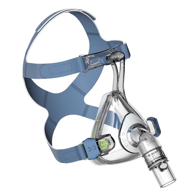 Celoobličejová maska s nastavitelnou čelní opěrkou, s otočným nosním kloubem, maska je určená pro vyšší terapeutické tlaky